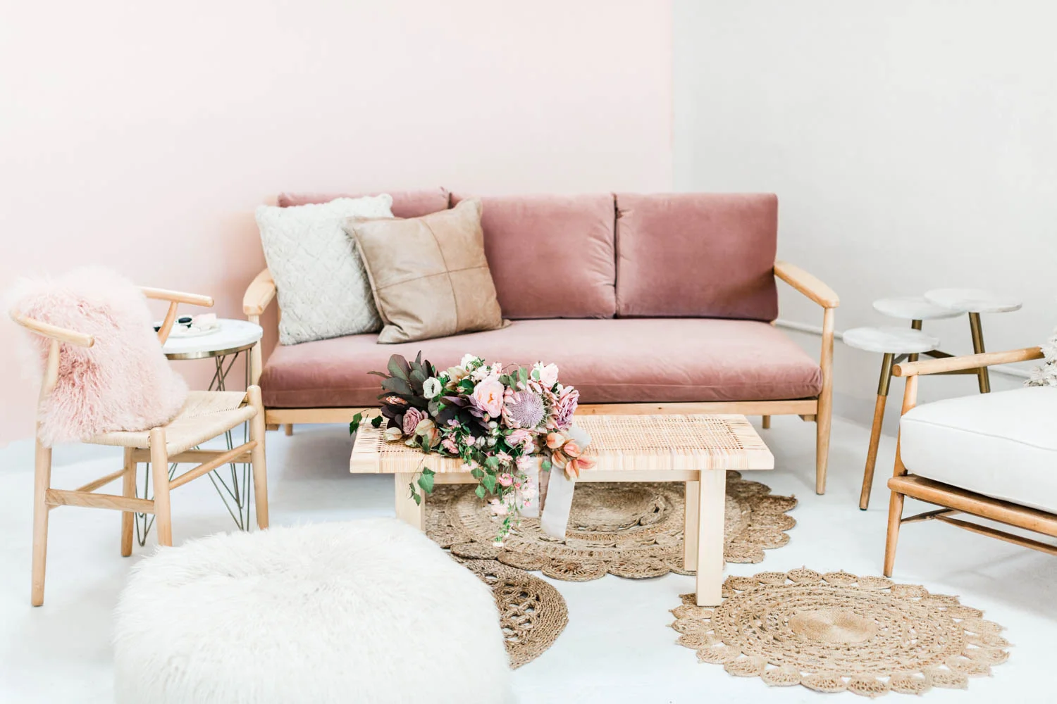 Altar Arrangement - A wired stand on either side of the aisle to be filled with greenery, filler flower and some blooms. Very nature inspired.